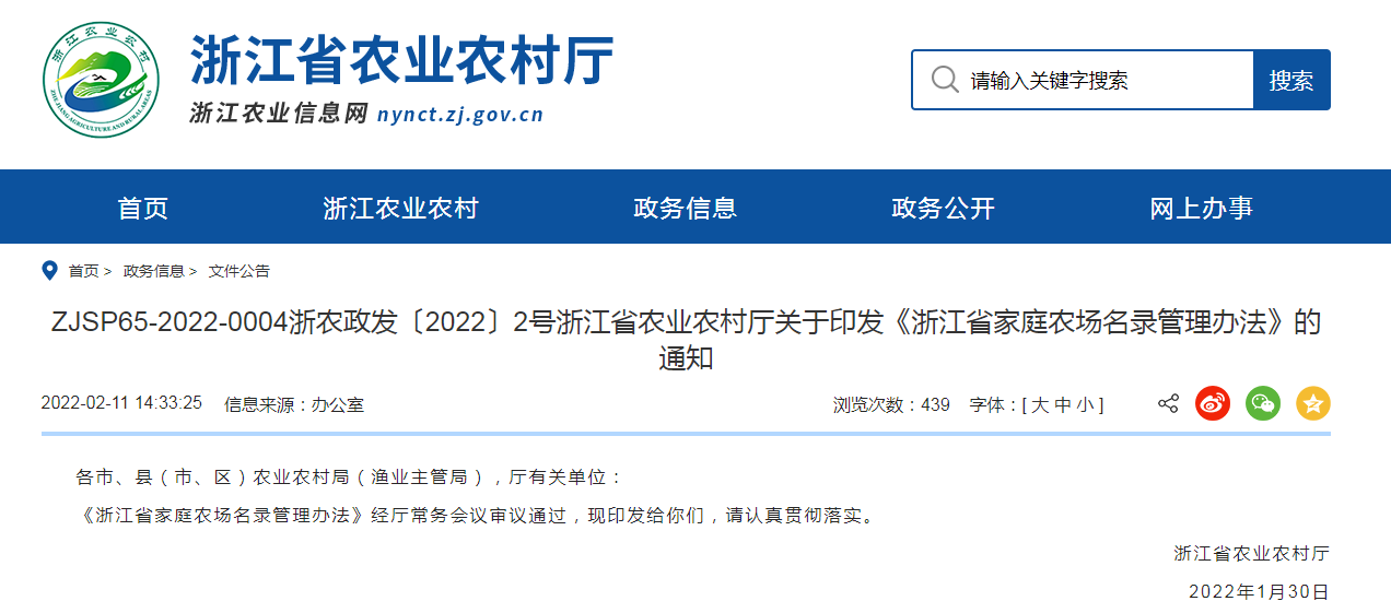 浙江省家庭農場名錄管理辦法第一章 總 則第一條 為規范家庭農場名錄管理,引導和促進家庭農場高質量發展,根據中央和省委、省政府培育發展家庭農場有關文件精神,制......
