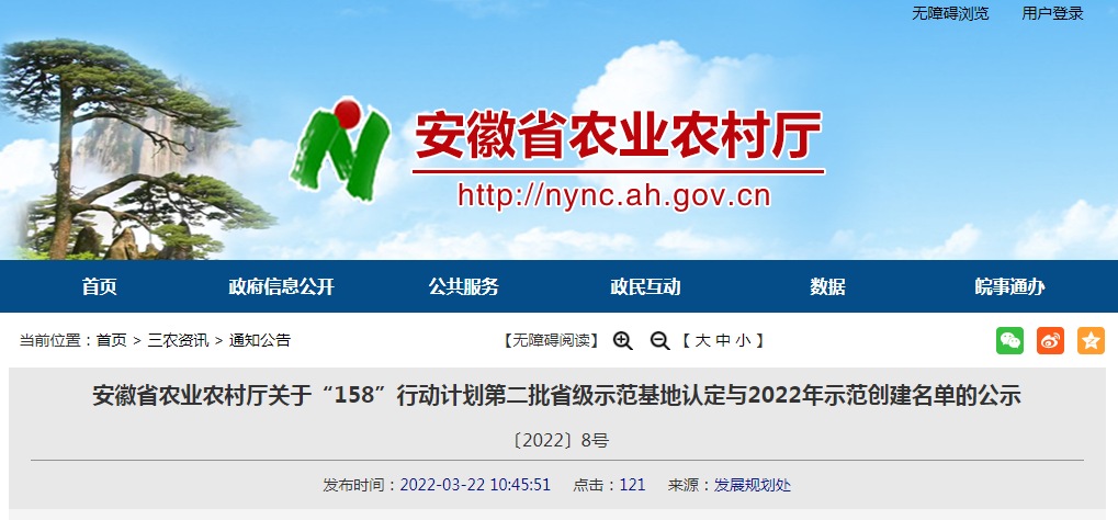 為深入實施“158”行動計劃,加快長三角綠色農產品生產加工供應基地建設,近期,我廳組織對第二批省級示范創建基地開展了評估認定,并啟動了2022年省級示范創建申報......