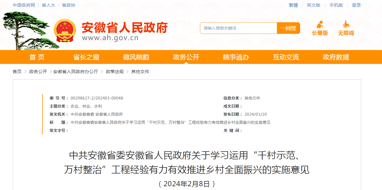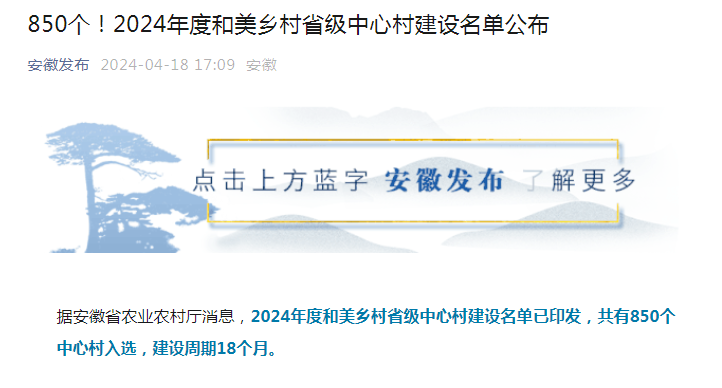 2024年度安徽省和美鄉村省級中心村建設名單已印發,共有850個中心村入選,建設周期18個月。加快建設彰顯徽風皖韻的宜居宜業和美鄉村,是推進安徽農業農村現代化的......