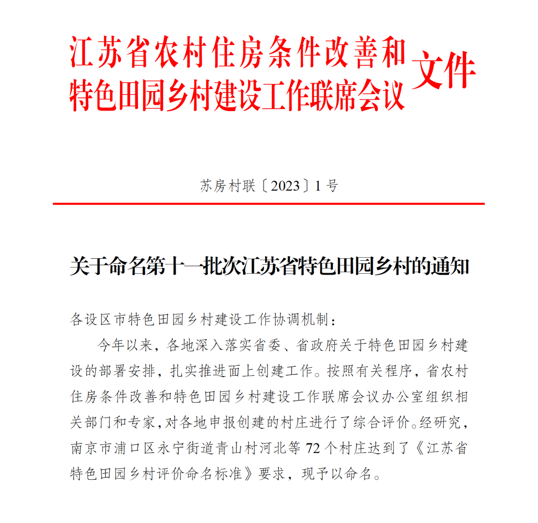 7月17日,第十一批次江蘇省特色田園鄉村名單公布。經研究,南京市浦口區永寧街道青山村河北等72個村莊達到了《江蘇省特色田園鄉村評價命名標準》要求,被命名為“江蘇......