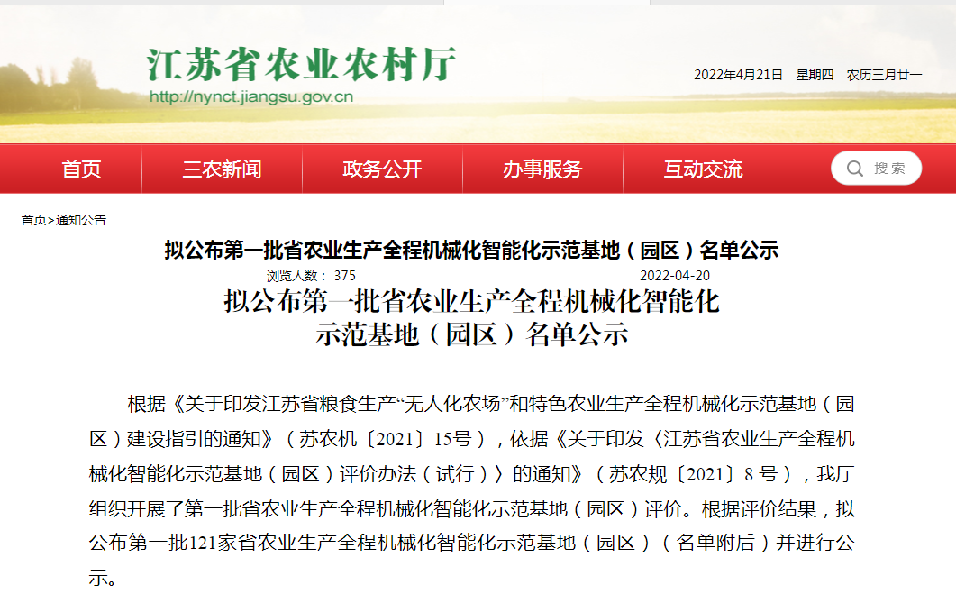 根據《關于印發江蘇省糧食生產“無人化農場”和特色農業生產全程機械化示范基地(園區)建設指引的通知》(蘇農機〔2021〕15號),依據《關于印發〈江蘇省農業生產全......