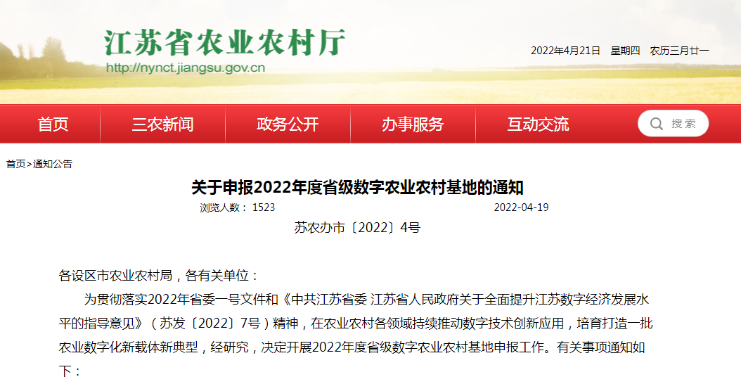 各設區市農業農村局,各有關單位:為貫徹落實2022年省委一號文件和《中共江蘇省委 江蘇省人民政府關于全面提升江蘇數字經濟發展水平的指導意見》(蘇發〔2022〕7......