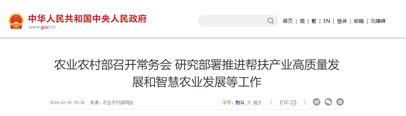 10月9日,農(nóng)業(yè)農(nóng)村部黨組書記、部長(zhǎng)韓俊主持召開部常務(wù)會(huì)議,審議并原則通過《農(nóng)業(yè)農(nóng)村部關(guān)于落實(shí)“四個(gè)一批”要求扎實(shí)推進(jìn)幫扶產(chǎn)業(yè)高質(zhì)量發(fā)展的指導(dǎo)意見(送審稿)》《......