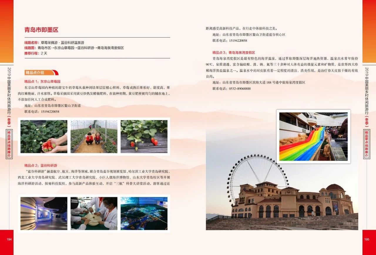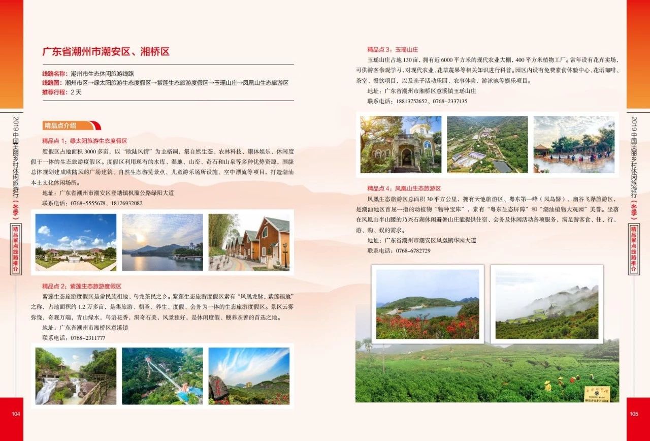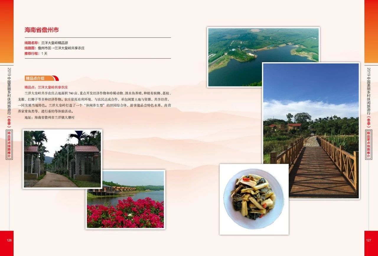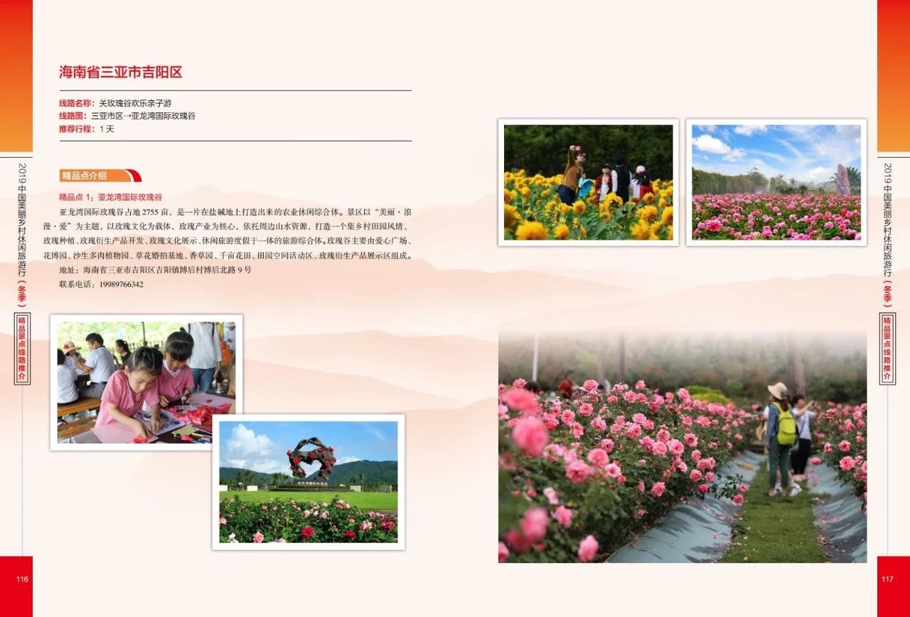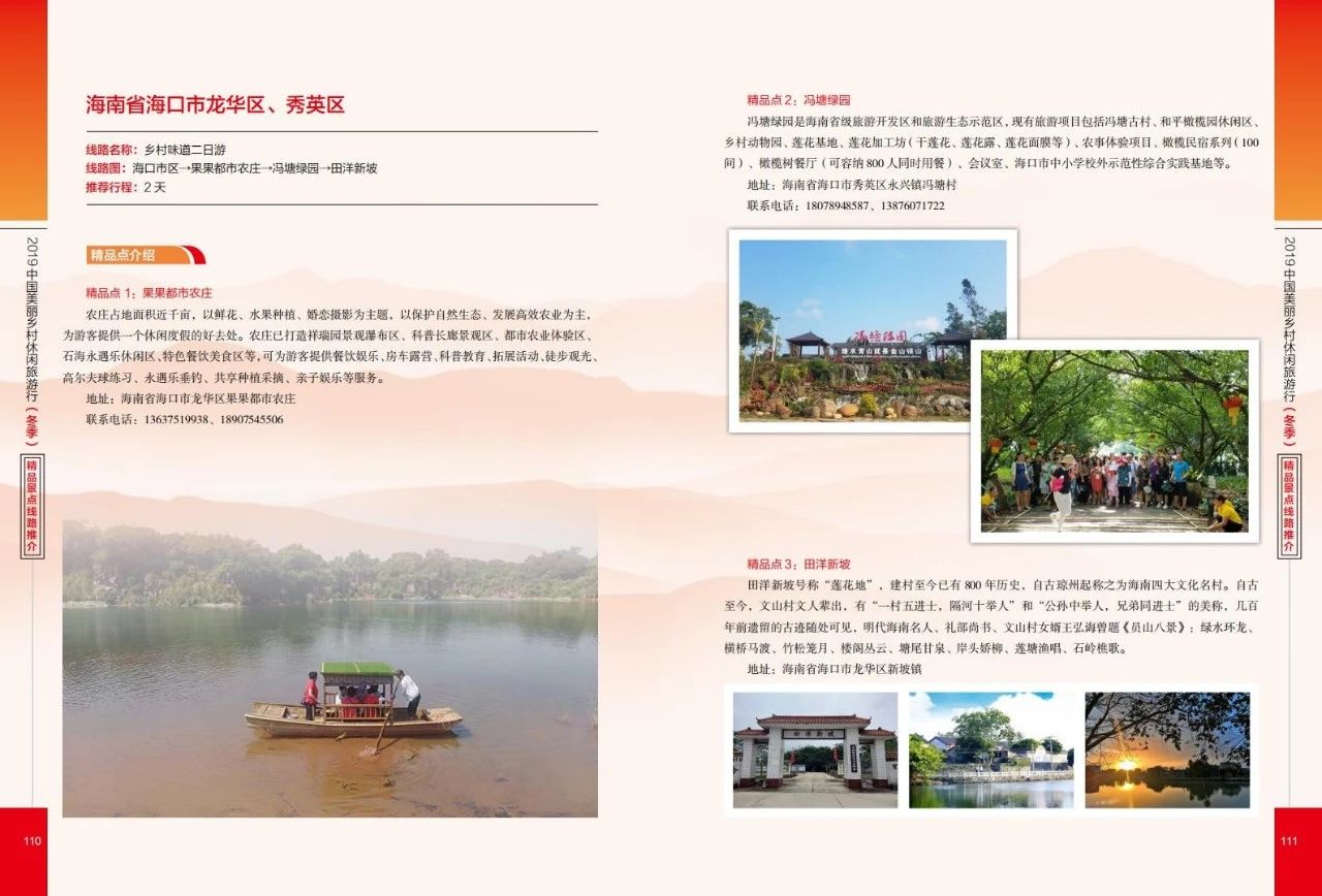 12月24日,2019中國美麗鄉村休閑旅游行(冬季)推介活動在海南省瓊海市博鰲鎮舉辦,發布休閑農業和鄉村旅游冬季精品旅游線路100條、景點273個。這是農業農村部鄉村休閑旅游“春觀花”“夏納涼”“秋采摘”“冬農趣”系列推介活動中的冬季主題活動。至此,2019年四季活動共推介線路410條、景點1300個,精品景點線路37條。
