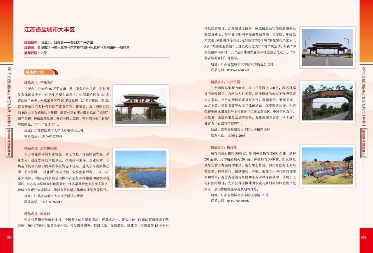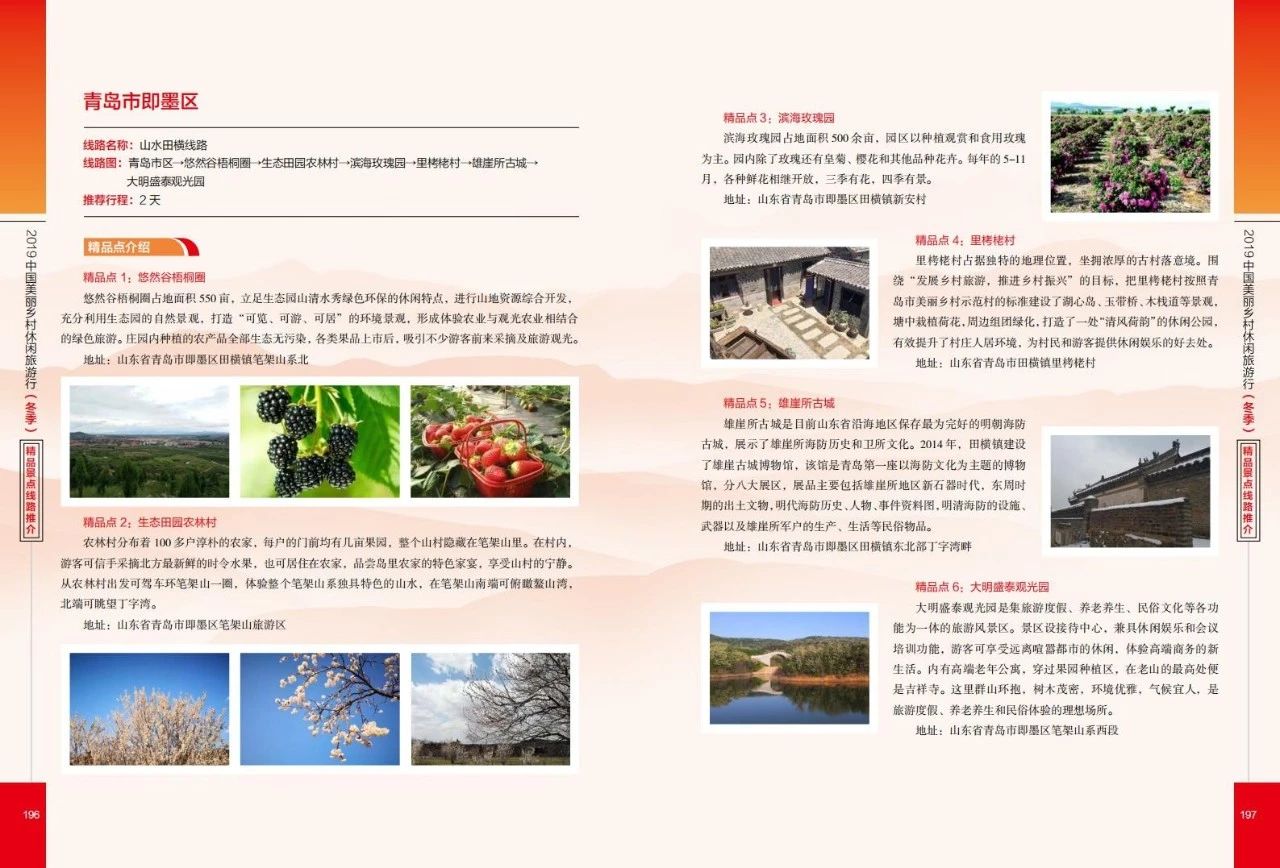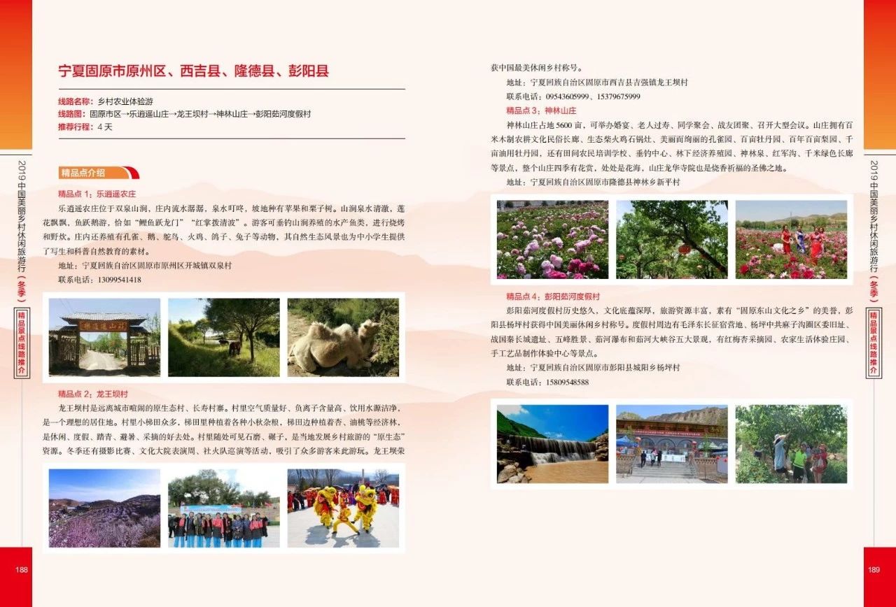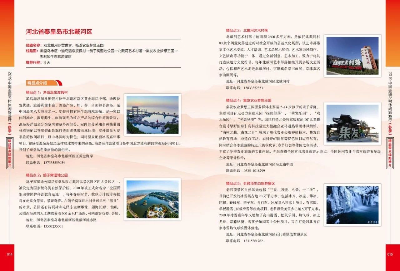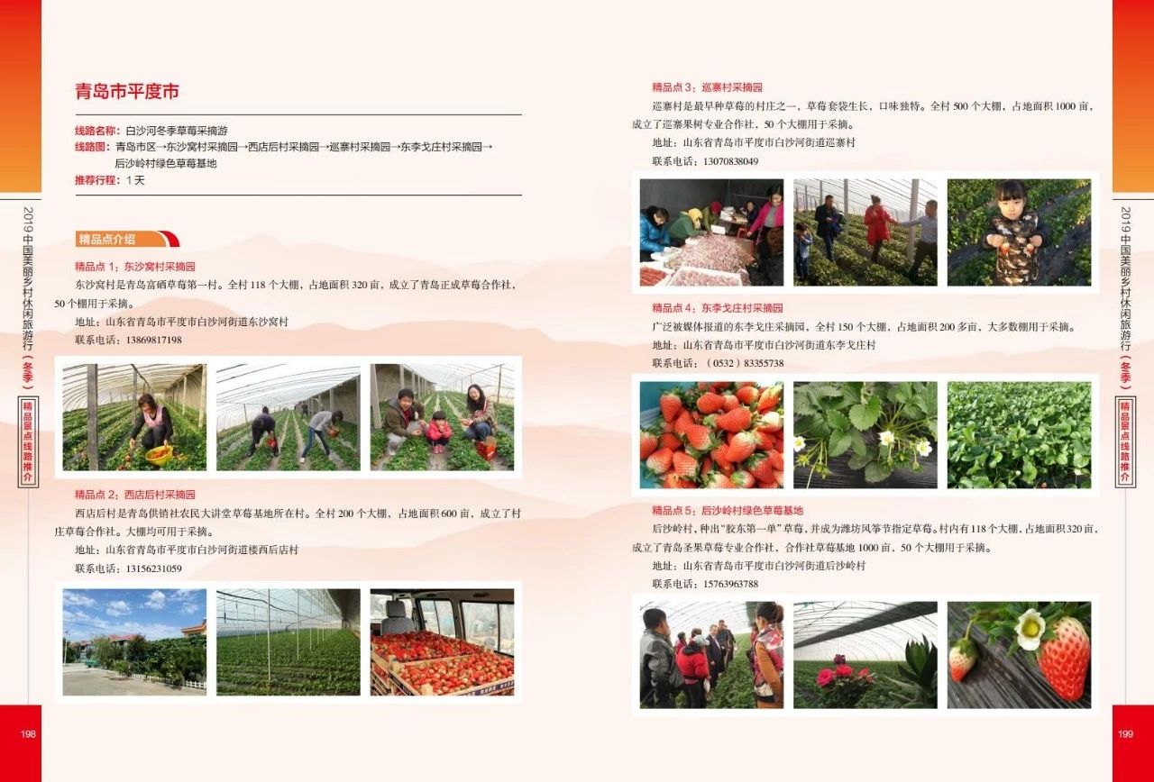 12月24日,2019中國美麗鄉村休閑旅游行(冬季)推介活動在海南省瓊海市博鰲鎮舉辦,發布休閑農業和鄉村旅游冬季精品旅游線路100條、景點273個。這是農業農村部鄉村休閑旅游“春觀花”“夏納涼”“秋采摘”“冬農趣”系列推介活動中的冬季主題活動。至此,2019年四季活動共推介線路410條、景點1300個,精品景點線路37條。