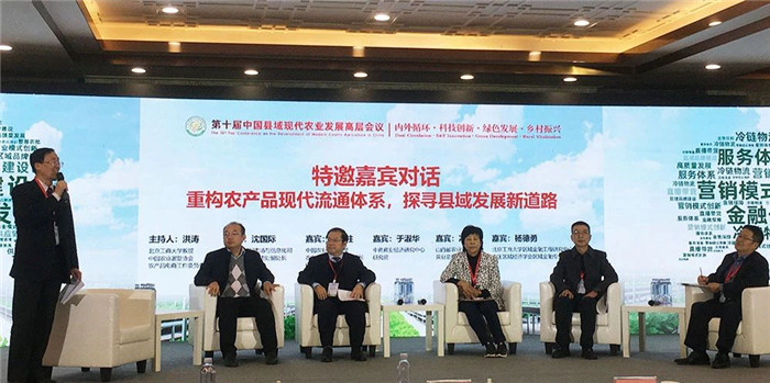 最后是特邀嘉賓對話環節,北京工商大學教授、中國農業展覽協會農產品電商工作委員會主任洪濤擔任此環節的主持人,對話圍繞“重構農產品現代流通體系,探尋縣域發展新道路”這一主題展開討論。農業農村部市場與信息化司品牌與流通促進處副處長沈國際,中國農業大學教授、農業規劃科學研究所所長、中農富通首席專家張天柱,中商商業經濟研究中心研究員于淑華,山西省農業農村廳果業總站站長馮耀斌,北京工商大學區域金融工程研究中心主任、中國區域經濟學會區域金融專業委員會主任委員楊德勇,各位嘉賓分別從實踐的角度出發,結合具體情況,為我們分享了如何重構農產品現代流通體系,探尋縣域發展新道路。