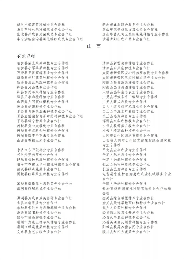國家農(nóng)民合作社示范社公示名單.docx