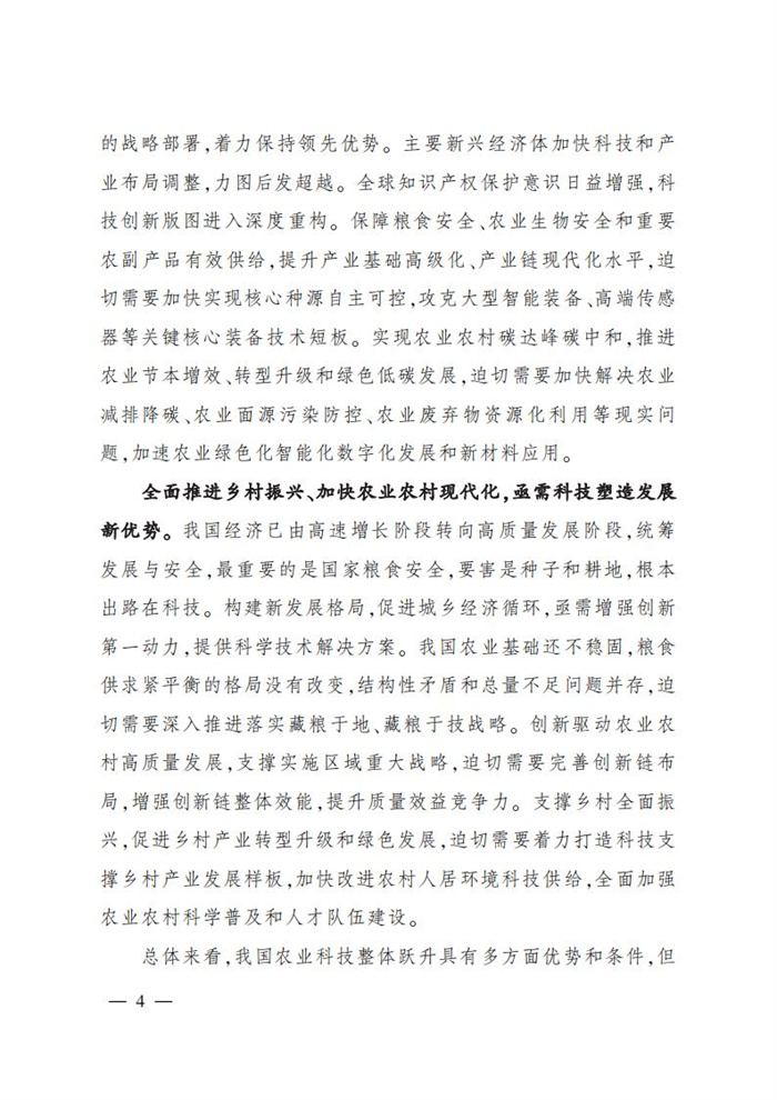 《規劃》顯示,把高水平農業科技自立自強作為農業農村發展的戰略支撐,聚焦基礎前沿熱點、關鍵核心技術卡點、產業發展升級痛點及鄉村建設發展重點,特別是突出品種、地力、農機、植保、防災等關鍵環節和生物育種、基因編輯、黑土地、鹽堿地、大豆、油菜、生物安全等重點領域,挖掘糧食作物增產潛力,確保國家糧食安全,支撐引領農業高質量發展和鄉村全面振興。