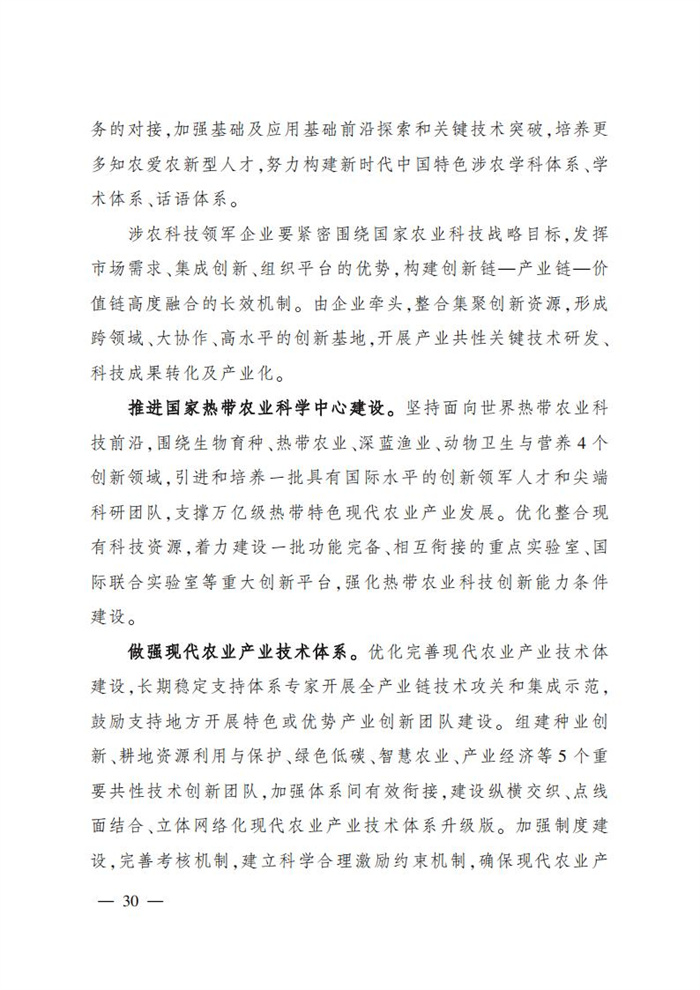 ———產學研深度融合平臺載體實現新發展。國家農業科技創新聯盟一體化實體化建設發展水平持續提高。南京、太谷、成都、廣州、武漢等國家現代農業產業科技創新中心運行日趨成熟,農業“硅谷”和區域經濟增長極作用日益凸顯。企業牽頭組建的新型研發機構、創新聯合體蓬勃發展,跨領域、大協作、高水平的創新基地與平臺發展進一步加速,催生一批國際影響力大、科技創新力強的涉農科技領軍企業。