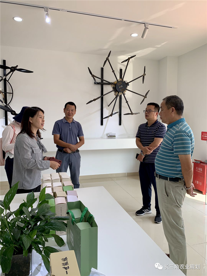 調研組首先來到艾津農業,艾津農業主要致力于農業社會化服務和打造高端優質稻米兩大業務板塊。2013年艾津農業開始做植保社會化服務,2014年成為南京市第一家無人機植保服務公司。隨著大疆無人機技術的成熟,現在一個小時可以作業80-100畝,全天正常水平300-400畝。到今年為止,服務水稻小麥面積每年都在16萬畝以上,且南京每個區都有服務點,成功打造“艾津歐標”知名稻米品牌。艾津未來3-5年將配備智能化機械設備,打造5G農場。