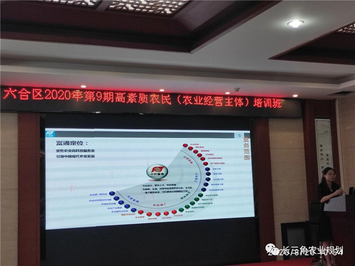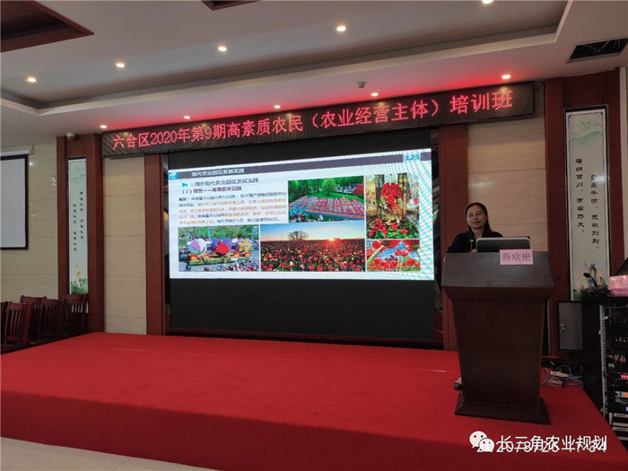 ?2020年8月26日上午,受南京市六合區農業農村局邀請,中農富通長三角農業規劃科學研究所薛欣艷所長在六合區平山林場(農民田間學校)為區內農業龍頭企業、休閑農業、家庭農場等農業新型經營主體約100名負責人進行了現代農業園區建設理論與實踐的專題授課。