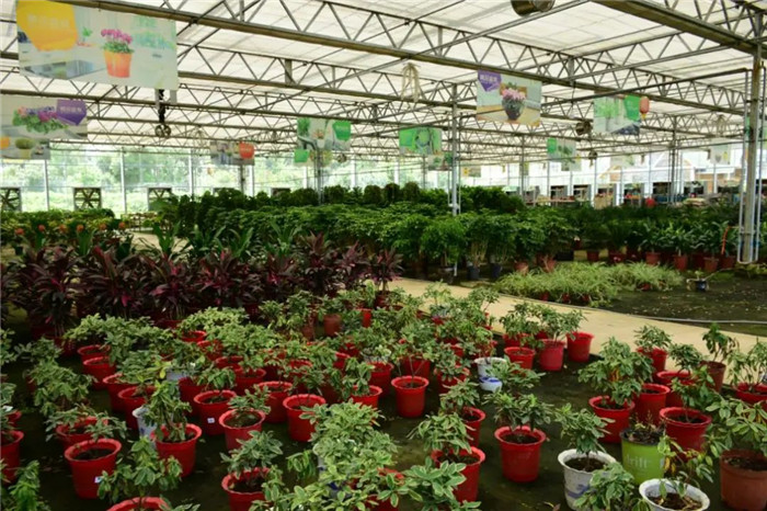 八卦洲現代農業產業園區打造2公頃高智能荷蘭高檔花卉,周年供應南京、安徽、揚州等地,各色花卉也為園區提升了顏值。在園區40余家入駐農業企業中,南京虹彩花卉有限公司便是其中一家核心花卉公司。南京虹彩花卉有限公司集花卉生產、研發及貿易為一體,主要產品有花卉種子、種苗、花卉成品生產與銷售、各項花卉配套服務等,在八卦洲擁有基地500畝,主要產品有萱草、繡球、玉簪、鳶尾等新優品種花園植物,同時還有穩定的研發隊伍,持續開發虹美石竹等系列新品種。作為一家花卉企業,入口處皆是各色各異的花卉產品,溫室內外花卉苗木長勢良好。據導購介紹,花卉成品主要以訂單銷售為主,但在園區舉辦大型活動時,也會吸引大量游客前來購買,而且除了線下渠道,虹彩也開通了線上銷售渠道,人們足不出戶也能買到美麗的盆栽。