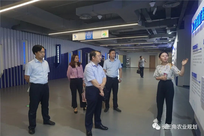 首先,張天柱教授一行來到南京國家農創園展示中心,參觀考察了創新長廊、規劃展覽館、酒店式公寓模型展、江蘇省農業農村大數據指揮中心等,詳細了解了農創園在載體規劃建設、創新生態體系打造、招商引智等方面的做法和成效。