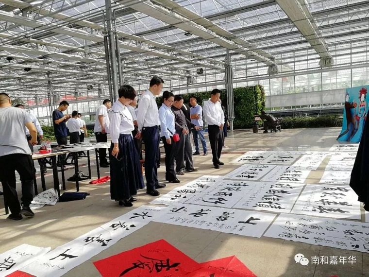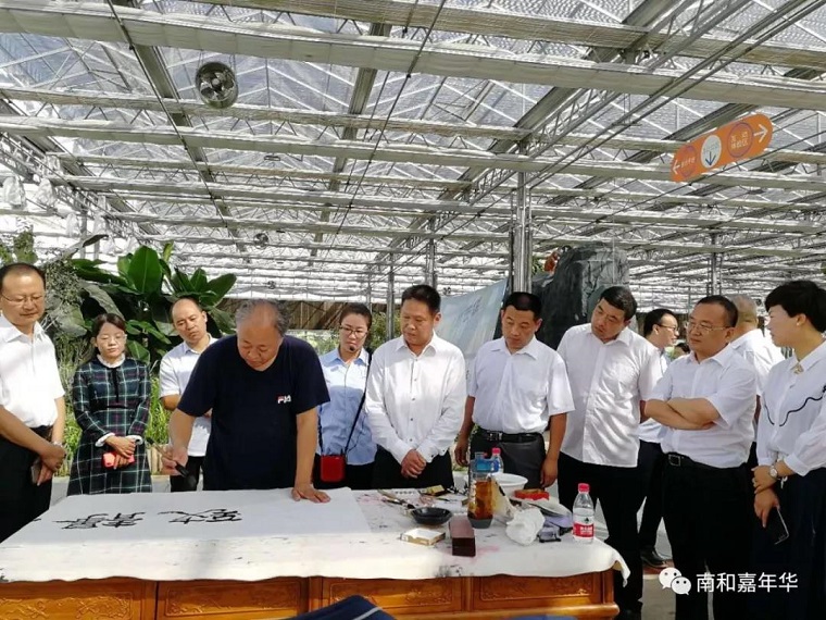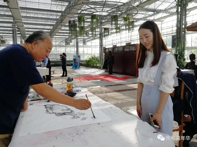 開幕式后,領導一行視察書法筆會。在筆會現場,南和書畫家們揮毫潑墨,爭相獻藝,用飽蘸濃墨的筆觸表達著對生活的熱愛和對佳節的祝福。一幅幅精美作品贏得觀眾的嘖嘖稱贊。前來參觀的書畫愛好者們也相互交流,場面氣氛十分熱烈。