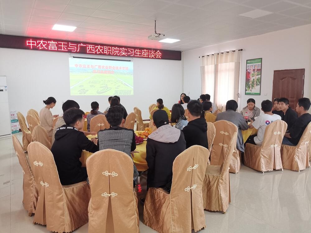 ▼11月26日,中農富玉與廣西農職院實習生舉行座談會。公司領導勉勵同學們抓住機遇,迎接挑戰。希望同學們在自己的崗位上克服困難、再接再厲,掌握更多的實際操作技能,為之后的工作,打下堅實的基礎。