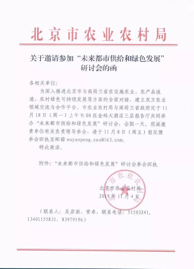 ▼由北京市農業農村局、荷蘭南荷蘭省政府、荷蘭駐中國大使館主辦,北京市農林科學院、北京中農富通園藝有限公司、荷蘭企業局、荷中商務促進有限公司承辦,荷蘭都市可持續聯盟提供支持的中荷“未來都市供給和綠色發展”研討會,將于2019年11月18日在北京金碼大酒店舉行,各項籌備工作進展順利,誠邀您的參會。點擊了解詳情!