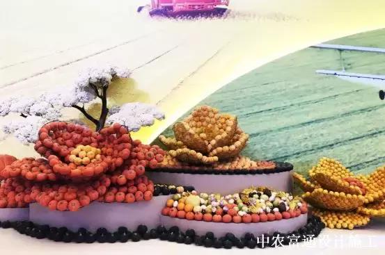 農產品場景的設計展現了改革開放40年來,我國農產品產量大幅度增長,實現了供求的基本平衡,豐年有余;凸顯了由于科研技術的提升,農產品品種更優化、種類更具豐富性;體現了農民群眾的獲得感、幸福感、安全感不斷提升;同時也表達了農業“走出去”戰略的實施,中國農產品走上國際舞臺的重要體現。
