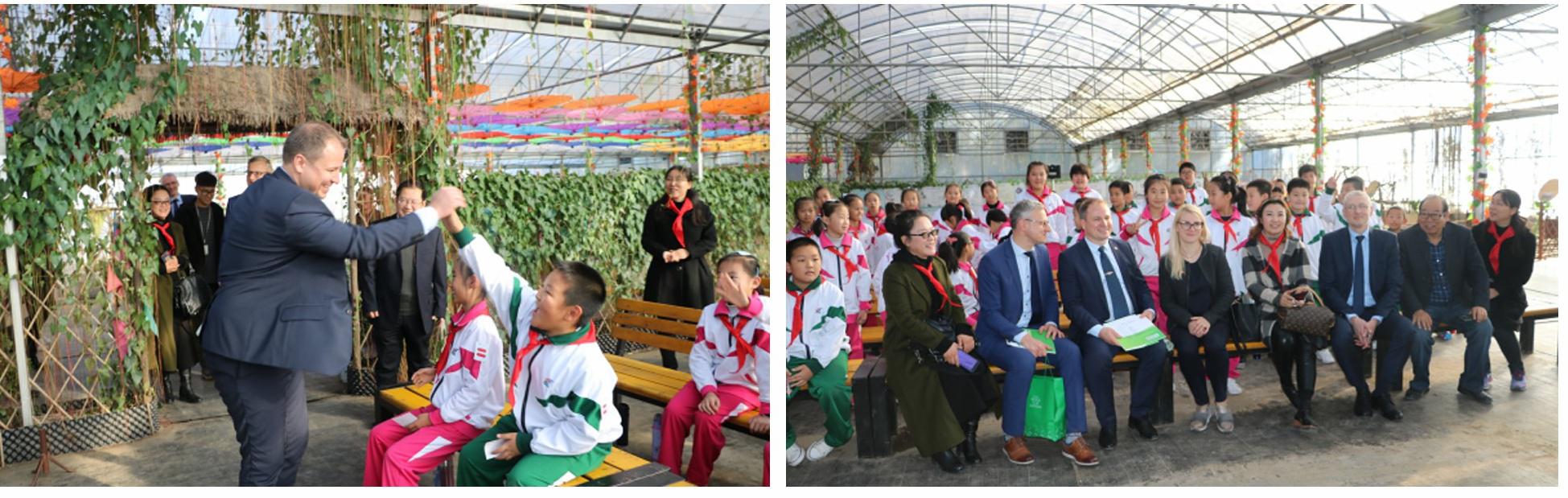 參觀過程中,在草莓溫室外賓對園區(qū)草莓新品種培育產(chǎn)生了濃厚的興趣,詢問草莓的種植技術(shù)、種植環(huán)境及產(chǎn)量,科技園副總工李玉江進行了詳細的講解;在花卉景觀溫室對百香果花發(fā)出了驚嘆,“太漂亮了,從來沒有見過這種植物”;在果樹區(qū)對科技園全程機械化種植管理應(yīng)用表示了贊賞;在科技園田間超市詳細了解了果樹枝粉碎種蘑菇、高密度養(yǎng)魚及微納米氣泡技術(shù),表示可借鑒學(xué)習(xí);當走向科技園科普大講堂區(qū)域,國際外賓受到了在科技園進行“我與小樹共成長”公開課的通州運河小學(xué)師生的熱情邀請,互相擊掌表示友好,并集體拍照留念;