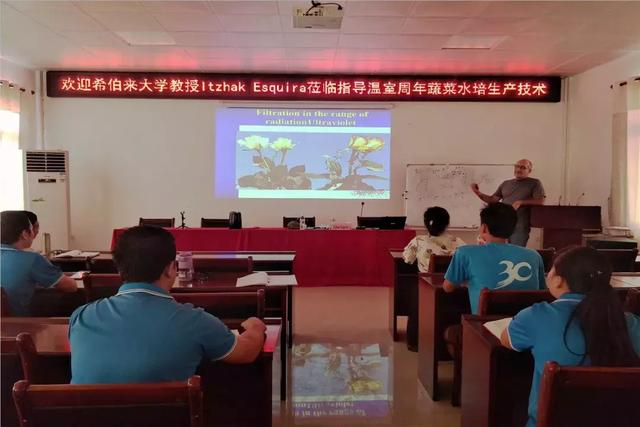 期間,伊扎克教授與中農(nóng)富玉公司技術(shù)人員進(jìn)行了水培蔬菜生產(chǎn)技術(shù)、溫室作物病蟲害綜合防治技術(shù)、育苗技術(shù)、草莓、馬鈴薯組培脫毒煉苗技術(shù)、引進(jìn)巨型蔬菜種植等專題內(nèi)容進(jìn)行深入交流與探討。