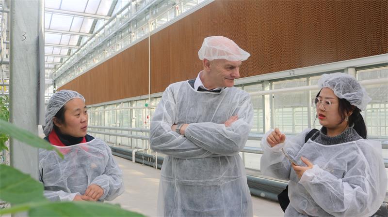 2018年2月1日,英國(guó)貝爾法斯特女王大學(xué)Christopher Elliott教授參觀考察南和農(nóng)業(yè)嘉年華和現(xiàn)代設(shè)施農(nóng)業(yè)產(chǎn)業(yè)集群,河北富碩農(nóng)業(yè)科技發(fā)展有限公司技術(shù)副總郭玲娟等陪同參觀介紹。