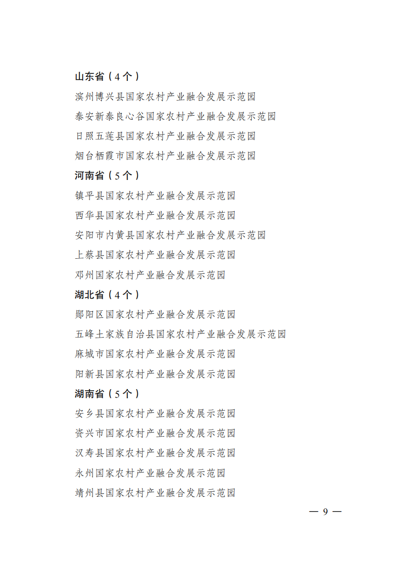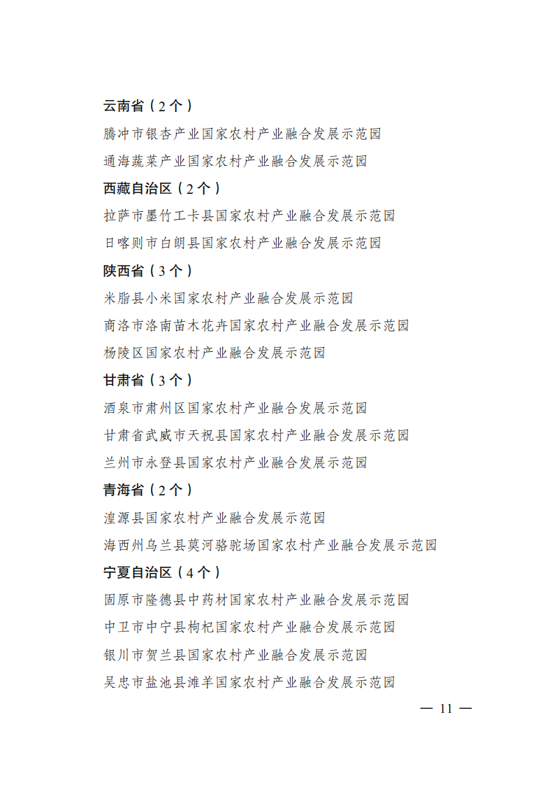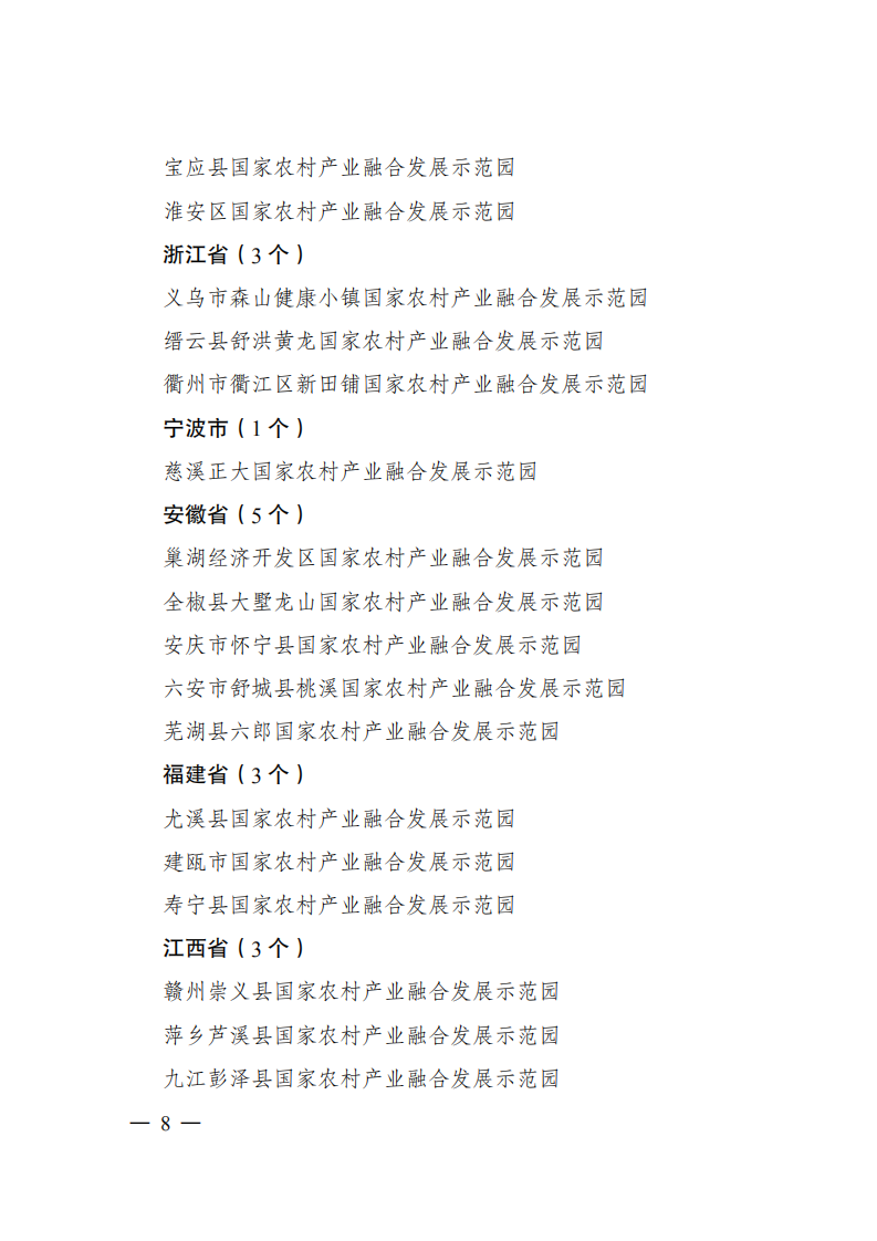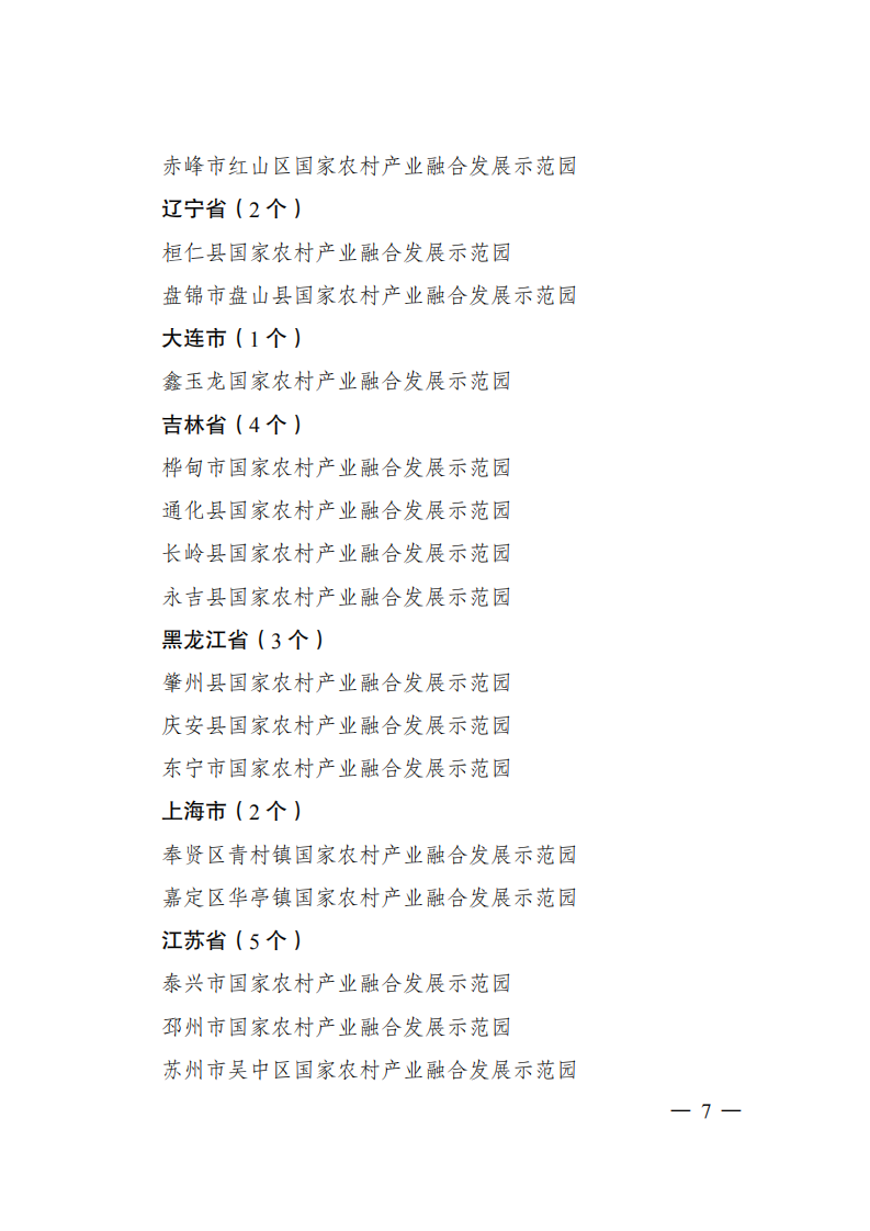 ??為深入貫徹落實近年來中央一號文件精神,充分發揮示范引領作用,促進農村一二三產業融合發展,根據《國家農村產業融合發展示范園認定管理辦法(試行)》,在省級推薦、第三方評審的基礎上,認定北京市密云區巨各莊鎮蔡家洼村農村產業融合發展示范園等100個單位為第二批國家農村產業融合發展示范園(以下簡稱“示范園”)。現將示范園名單(見附件)予以公布,并就有關事項通知如下: