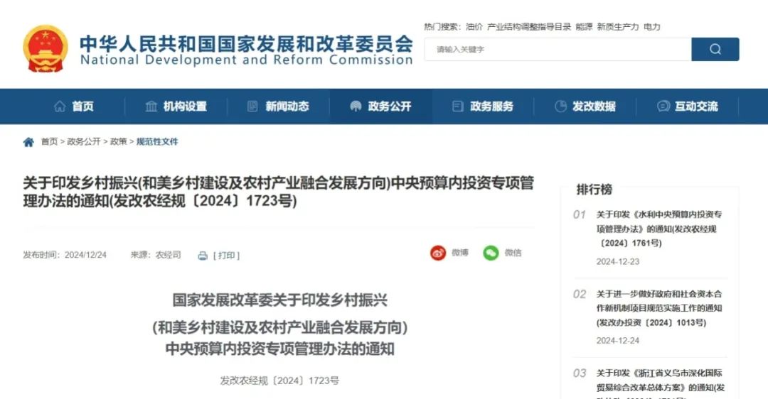 農業農村部,各省、自治區、直轄市及計劃單列市、新疆生產建設兵團發展改革委: 為貫徹落實黨中央、國務院決策部署,進一步規范鄉村振興中央預算內投資專項管理,根據《......