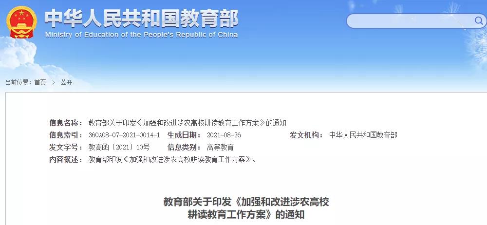 ●近日,教育部印發(fā)《加強(qiáng)和改進(jìn)涉農(nóng)高校耕讀教育工作方案》,對涉農(nóng)高校加強(qiáng)和改進(jìn)耕讀教育作出部署,提出把握耕讀教育基本內(nèi)涵、構(gòu)建耕讀教育課程教材體系、多渠道拓展實(shí)......