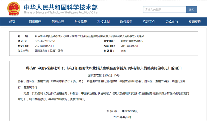 各省、自治區、直轄市及計劃單列市科技廳(委、局),新疆生產建設兵團科技局,中國農業銀行各省、自治區、直轄市分行,新疆兵團分行,各直屬分行: 為進一步加強現代農......