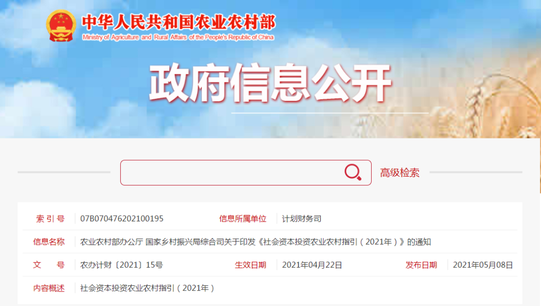 農業農村部 財政部關于公布2021年農業產業融合發展項目創建名單的通知農計財發[2021]10號各省、自治區、直轄市農業農村(農牧)廳(局、委)、財政廳(局),......