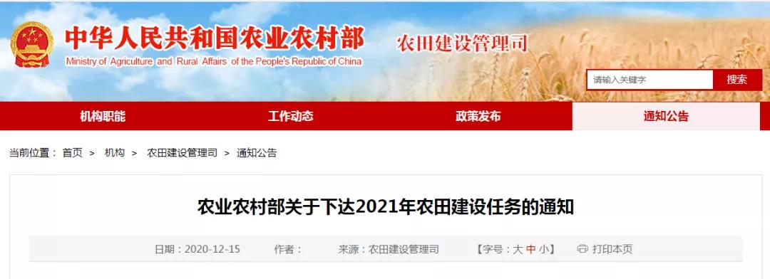 農業農村部關于下達2021年農田建設任務的通知各省、自治區、直轄市及計劃單列市農業農村(農牧)廳(局、委),新疆生產建設兵團農業農村局,黑龍江省農墾總局、廣東省......