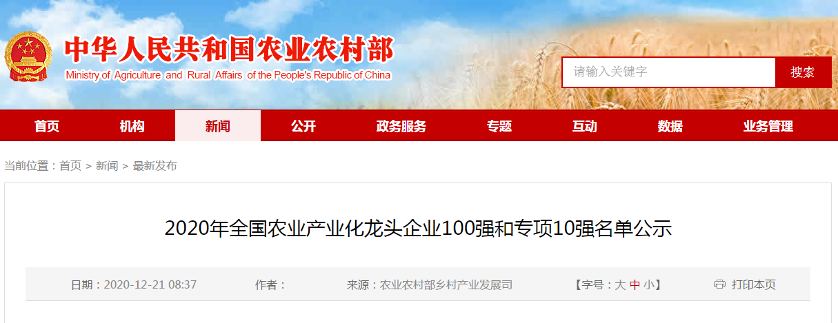 按照《中國農業產業化龍頭企業協會關于開展全國農業產業化龍頭企業100強推介活動的通知》要求,經企業自愿申報和專家審核,擬將中糧集團有限公司等確定為2020年全國......