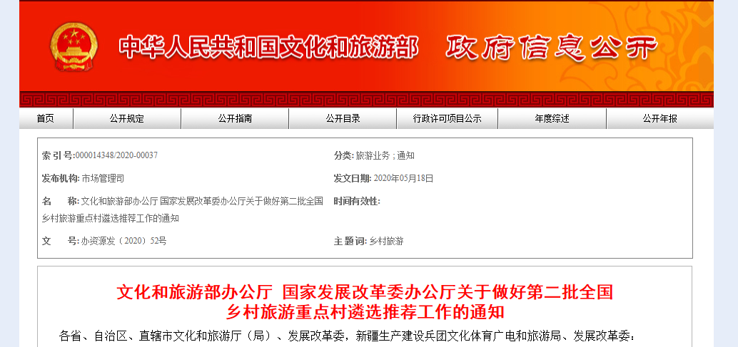 文化和旅游部辦公廳 國家發展改革委辦公廳關于做好第二批全國鄉村旅游重點村遴選推薦工作的通知...