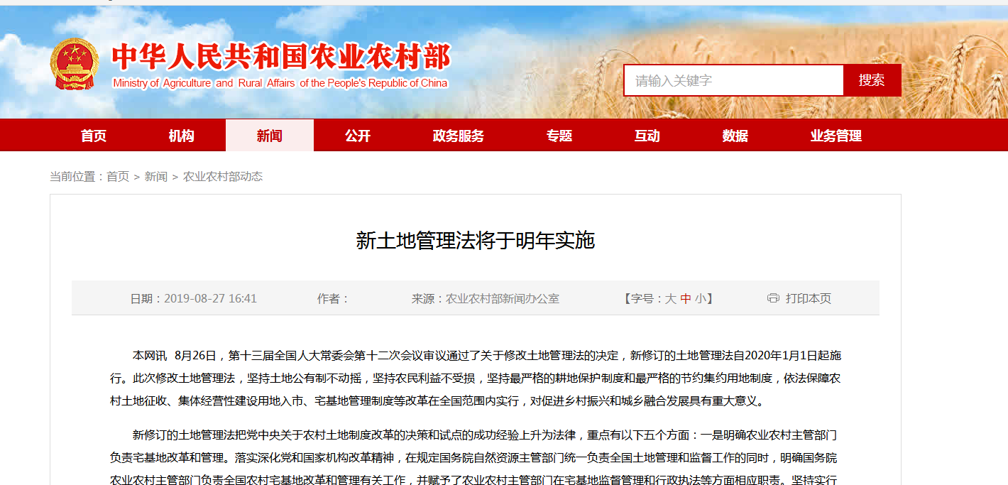 8月26日,第十三屆全國(guó)人大常委會(huì)第十二次會(huì)議審議通過(guò)了關(guān)于修改土地管理法的決定,新修訂的土地管理法自2020年1月1日起施行。...