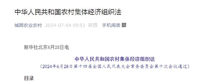 中華人民共和國農村集體經濟組織法(2024年6月28日第十四屆全國人民代表大會常務委員會第十次會議通過)目錄第一章 總則第二章 成員第三章 組織登記第四章 組織......