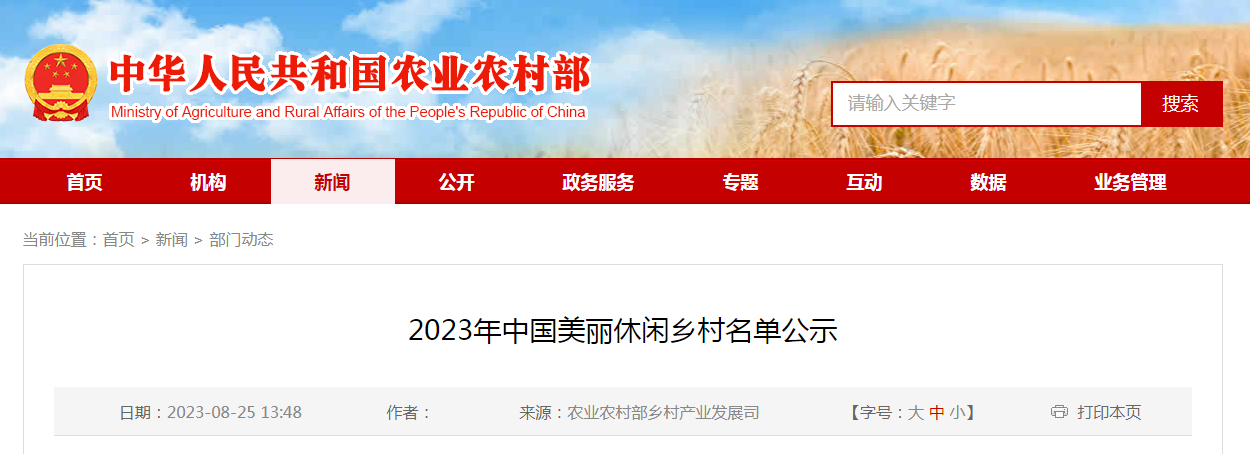 根據《農業農村部辦公廳關于開展2023年中國美麗休閑鄉村推介活動的通知》(農辦產〔2023〕3號)要求,今年我部繼續開展了中國美麗休閑鄉村推介工作。經地方推薦和......