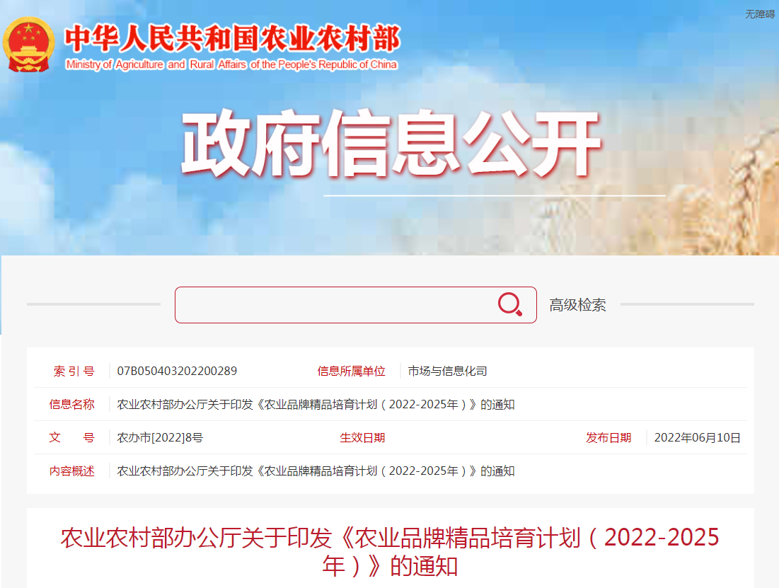 各省、自治區(qū)、直轄市農(nóng)業(yè)農(nóng)村(農(nóng)牧)廳(局、委),新疆生產(chǎn)建設(shè)兵團(tuán)農(nóng)業(yè)農(nóng)村局: 為深入貫徹中央農(nóng)村工作會議、中央一號文件精神,加快農(nóng)業(yè)品牌打造,夯實(shí)基礎(chǔ)支撐......
